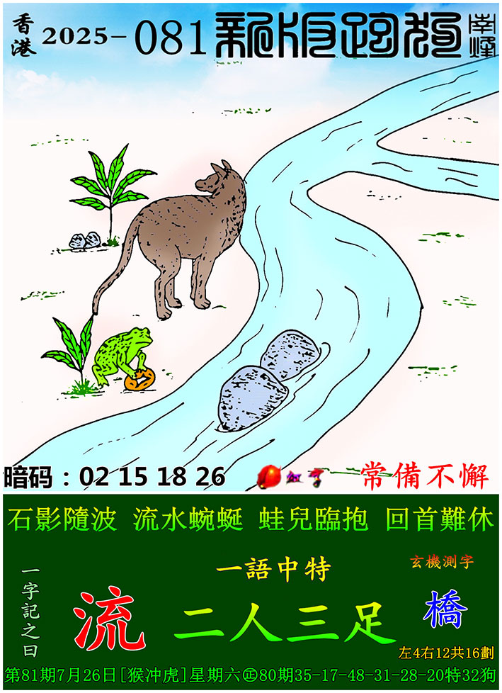 主题 : 081期:新版跑狗一字記之曰【流】 玄機測字:【橋】