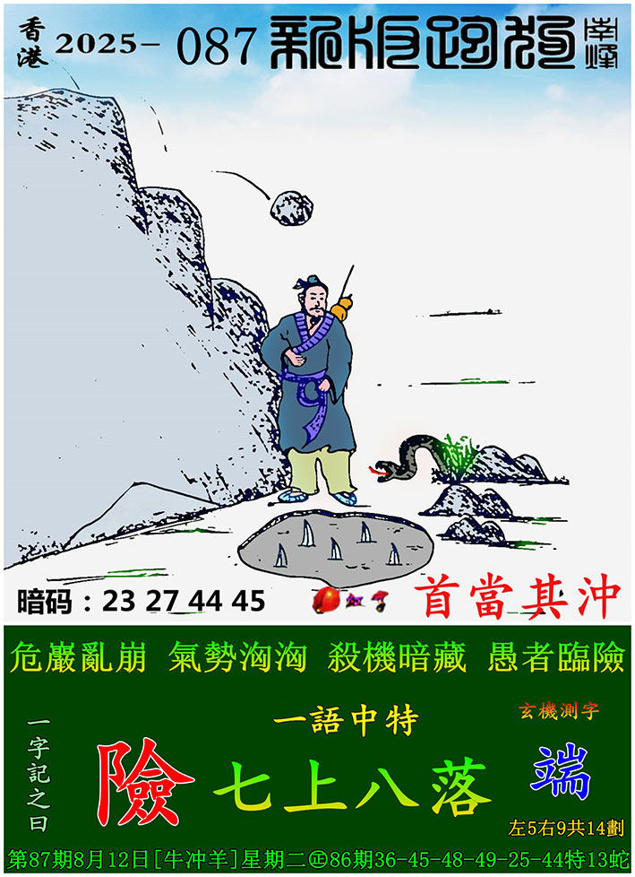 087期:新版跑狗一字記之曰【險】 玄機測字:【端】