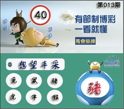 013期正版彩图挂:40 爆:猪 挂牌成语:想望丰采 挂牌出肖:兔鼠猪虎牛猴